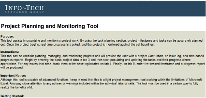 Supporting template that captures the project timeline information, issue log, and follow-up dashboard.