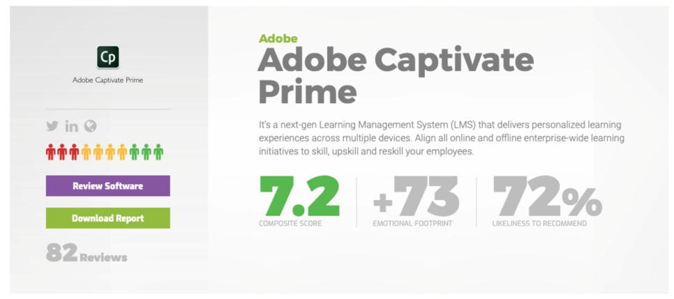 Source: Adobe Captivate Prime at SoftwareReviews.com, Report Published January 2019