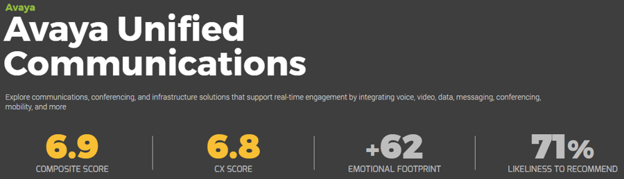 Source: Avaya Unified Communications Scorecard at SoftwareReviews. Accessed February 10, 2020