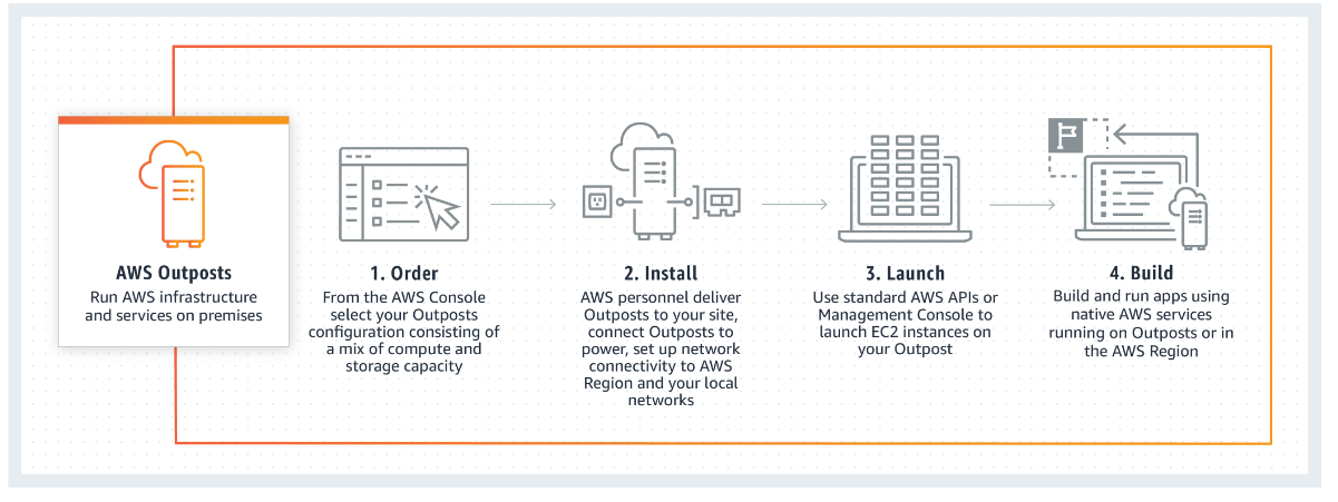 - Consistent user experience: Outposts are connected to the nearest AWS Region, thus providing the same service console and services across both environments.