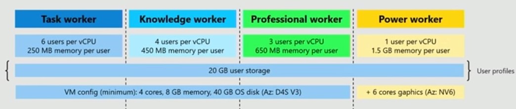 While this is a new offering and pricing will depend on your organization’s user profiles and usage scenarios, the typical Microsoft user profiles are outlined below. Historically, the task, knowledge, and professional worker would each have had a VM with allocated storage and RAM. Now with Azure multi-session, the combined pool of resources can be dynamically utilized and added to if necessary for peak capacity. Further pricing information is available here.