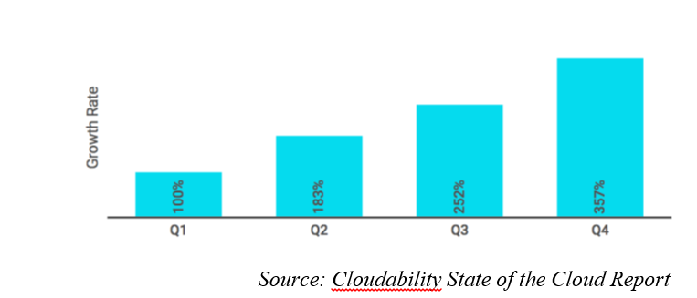 Rightscale is a cloud service broker, managing service across multiple clouds. Another cloud broker, Cloudability, also has a state of the cloud report based on customer usage analysis. The company notes that “serverless growth across AWS Lambda and Microsoft Azure functions continues to see a rapid quarter over quarter growth.”