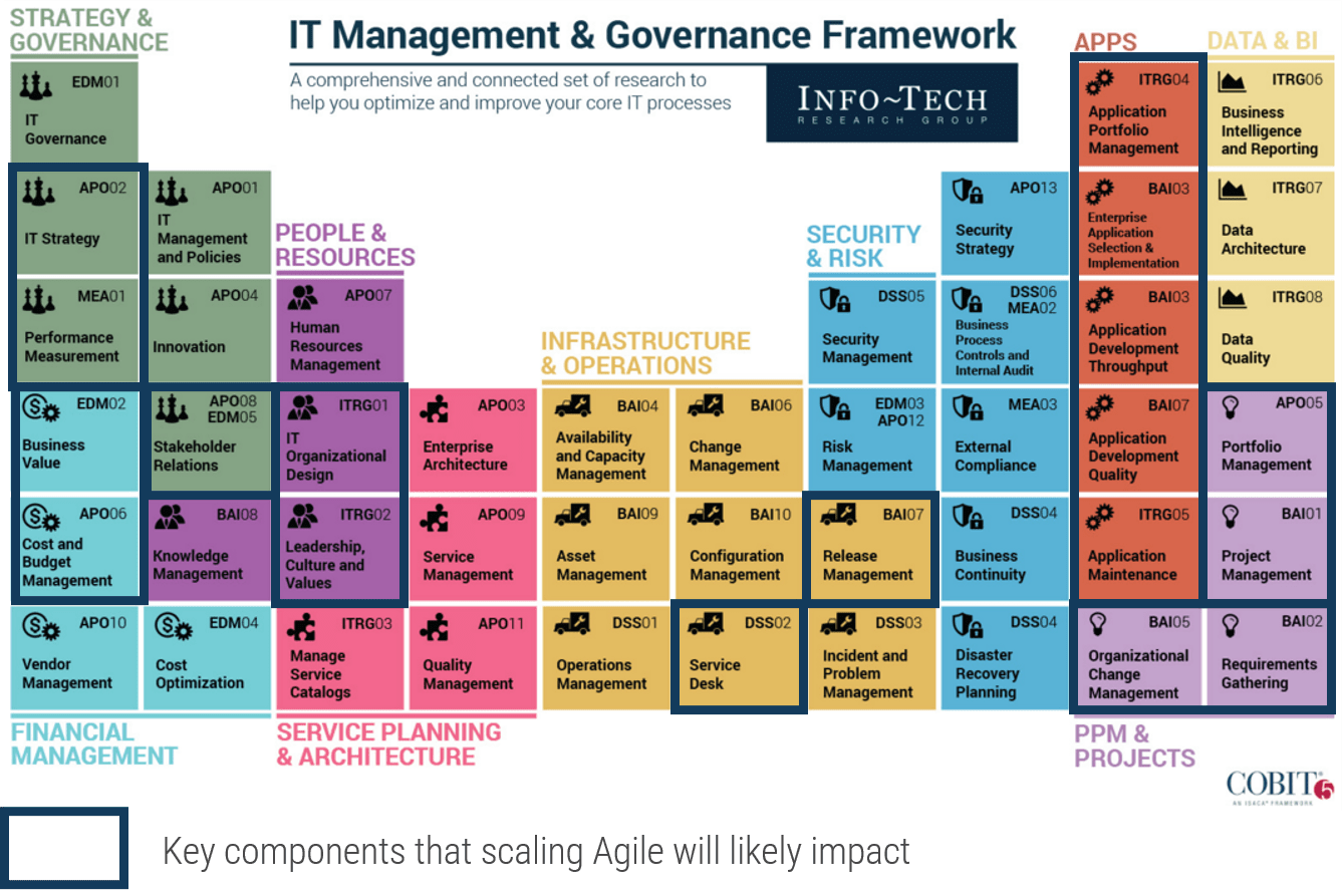 SAFe is an enterprise, culture, and process transformation that impacts all IT services. Some areas of Info-Tech's IT Management & Governance Framework have higher impacts and require special attention. Plan to include transformation support for each of these topics during your SAFe implementation. SAFe will not fix broken processes on its own.