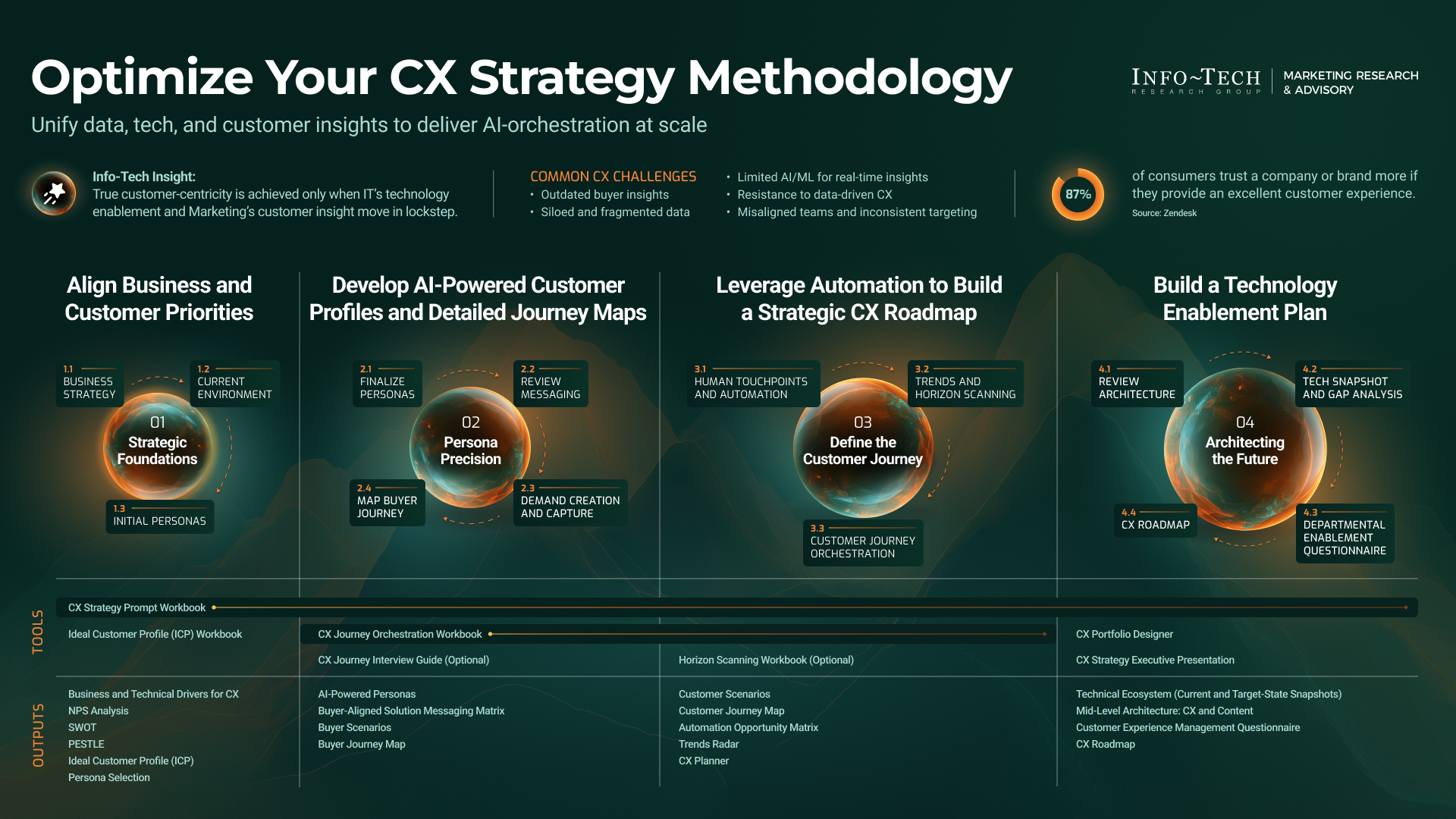 - Technology Enablement Plan: Prioritized technology initiatives using the CX Portfolio Designer.