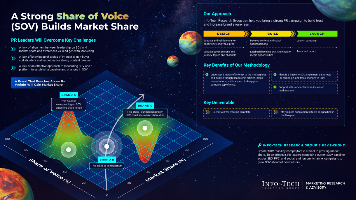 PR leaders that build brand Share of Voice across paid, earned, and owned media that exceeds actual market share will enable market share growth vs. key competitors.