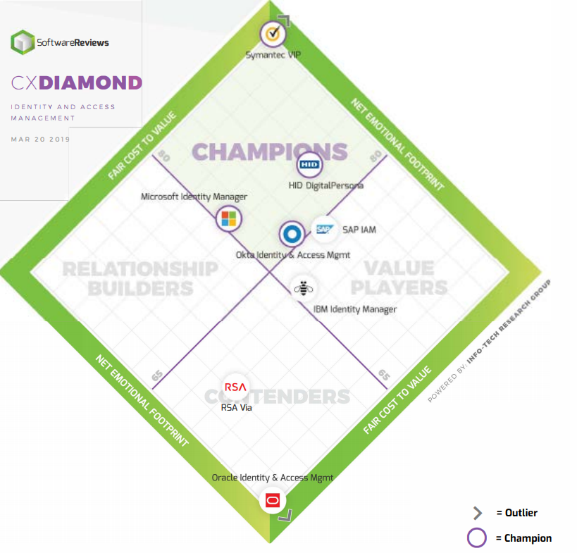 Symantec VIP comes out on top regarding its cost-to-value ratio. Customers are finding that, given the cost of the Symantec VIP product, the value they receive far exceeds expectations. When it comes to customer service, customers say Symantec offers a reliable product, provides customer experiences that are more effective than frustrating, and is transparent in contract negotiations. This is just the tip of the iceberg for the areas in which Symantec tops the charts in the IAM Customer Experience Report; if you want to learn more about this vendor’s emotional footprint and feature set and how it compares to other IAM vendors leading the space, reach out to a representative at Info-Tech.