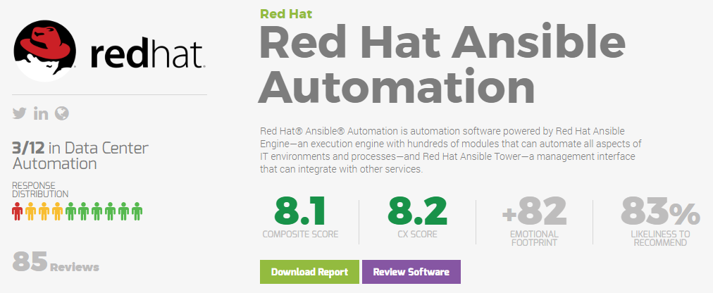 Red Hat Ansible Automation has received strong customer reviews on the Info-Tech SoftwareReviews site.