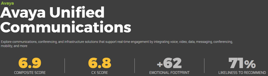 Source: Avaya Unified Communications Scorecard at SoftwareReviews. Accessed January 7, 2019