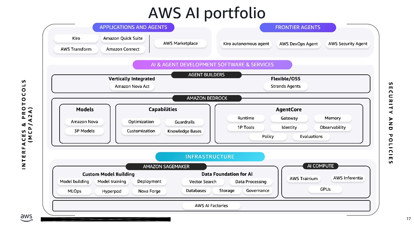 AWS’s differentiator is vertical integration across the entire AI stack from models to policy engines to observability to compute.