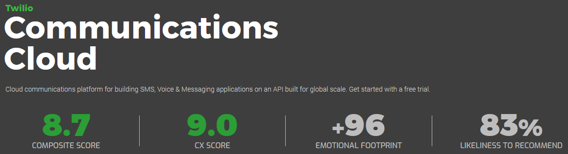 Source: Twilio Scorecard at SoftwareReviews. Accessed July 14, 2020.