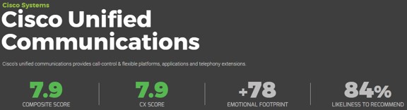 Source: SoftwareReviews, Cisco Unified Communications Product Scorecard. Accessed February 7, 2020.