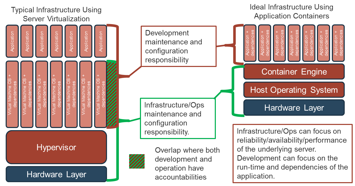 In an ideal world, infrastructure operations would focus on the availability, capacity, and performance of a homogenous platform. Developers would focus on building and configuring the application. It would be a frictionless process in that there would be no need to establish requirements and approvals for a server (even a virtual one). When the application is ready it is simply moved to the appropriate host.
