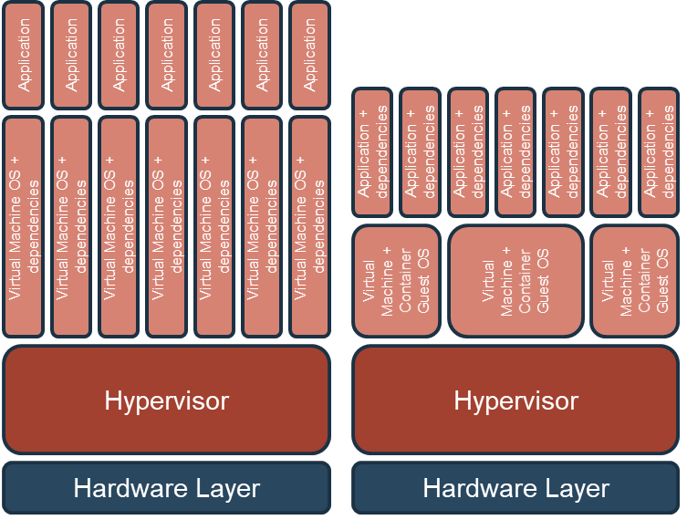 Proponents of containers over VMs will point out that containers are more lightweight than VMs as they do not contain the full operating system, only the bits necessary to make the application run on a given OS. This also means that infrastructure management and development will be able to function with less operational overlap.