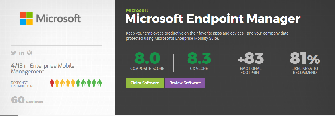 Source: Microsoft Endpoint Manager at SoftwareReviews, Accessed February 14, 2020
