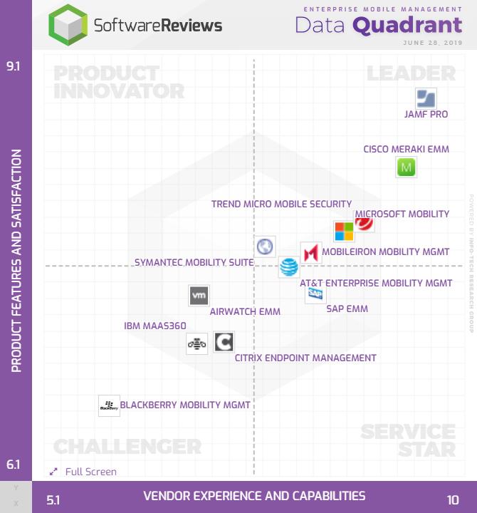 Source: SoftwareReviews, Enterprise Mobile Management, Quadrant Published June 28, 2019
