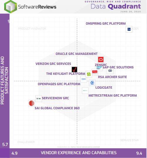 Source: SoftwareReviews’ Governance, Risk and Compliance Data Quadrant. Accessed June 26, 2020.