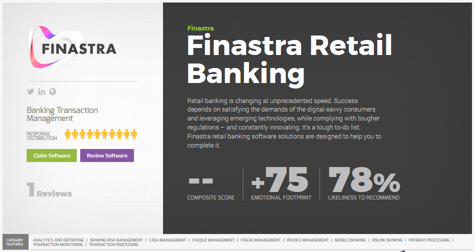 Source: Finastra at SoftwareReviews, Accessed January 7, 2020