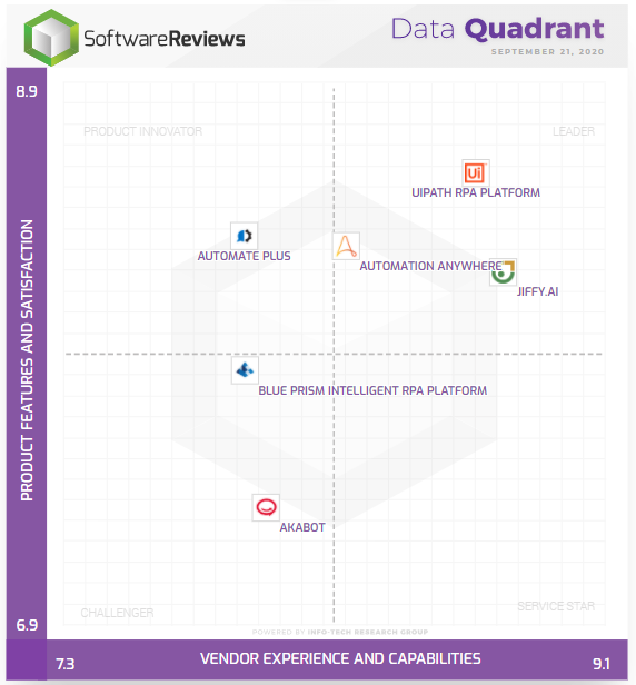 Source: Robotic Process Automation Data Quadrant at SoftwareReviews, Accessed September 21, 2020