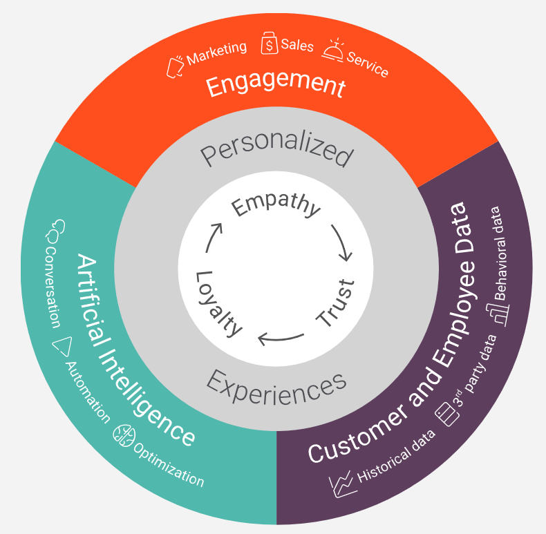 • Predictive engagement that strives to gain visibility of the customer’s journey, understand their intent, detect moments of struggle, and foster empathy.
