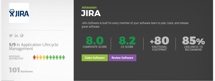 Source: Atlassian Jira at SoftwareReviews. Accessed December 2019