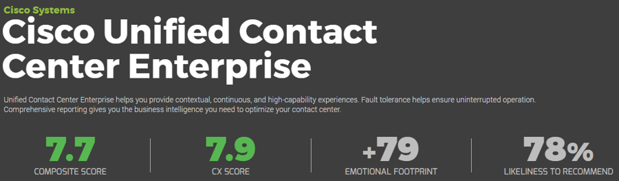 Source: Software Reviews, Cisco Unified Contact Center Enterprise Product Scorecard, Accessed February 7, 2020.