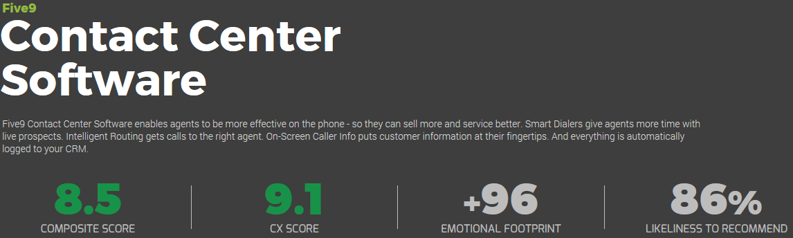 Source: SoftwareReviews Five9 Contact Center Software Scorecard. Accessed December 12, 2019.
