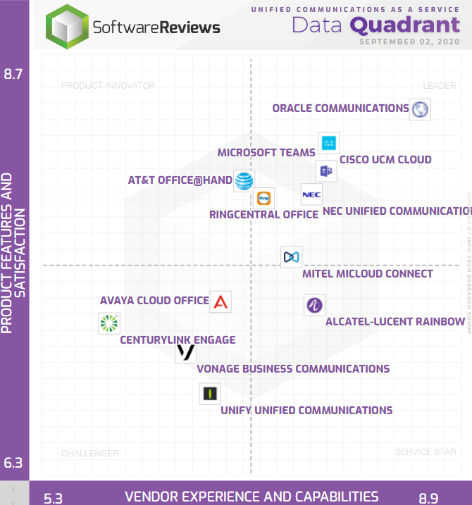 Source: SoftwareReviews UCaaS Data Quadrant. Accessed September 2, 2020.