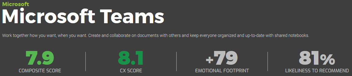 Source: SoftwareReviews Microsoft Teams scorecard for team collaboration. Accessed: May 29, 2020.