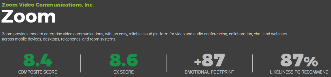 Source: SoftwareReviews Scorecard for Zoom. Accessed February 26, 2020