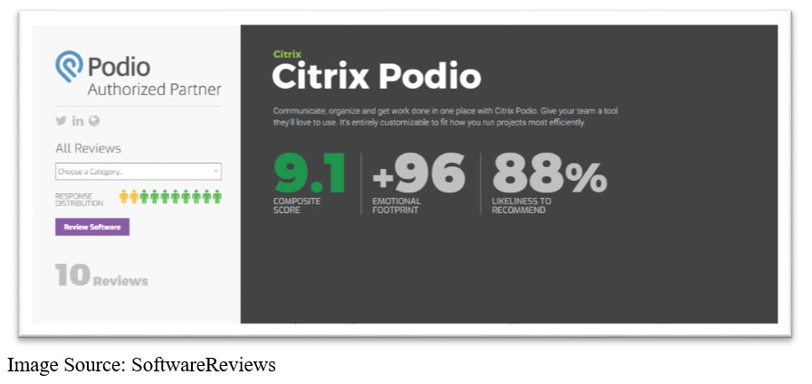 Citrix, a recognized leader in the collaboration space, purchased Podio in 2012 and has yet to integrate it in its products. Whilst Podio is being presented as a standalone product online, Citrix is offering a full suite of collaboration tools on its main site. The value proposition for using Podio is fading fast. Perhaps Citrix can deploy Podio in schools as a means to gain mindshare early – an excellent branding tactic – but, beyond that, unless Podio expands into risk management – its time as a peripheral is numbered.