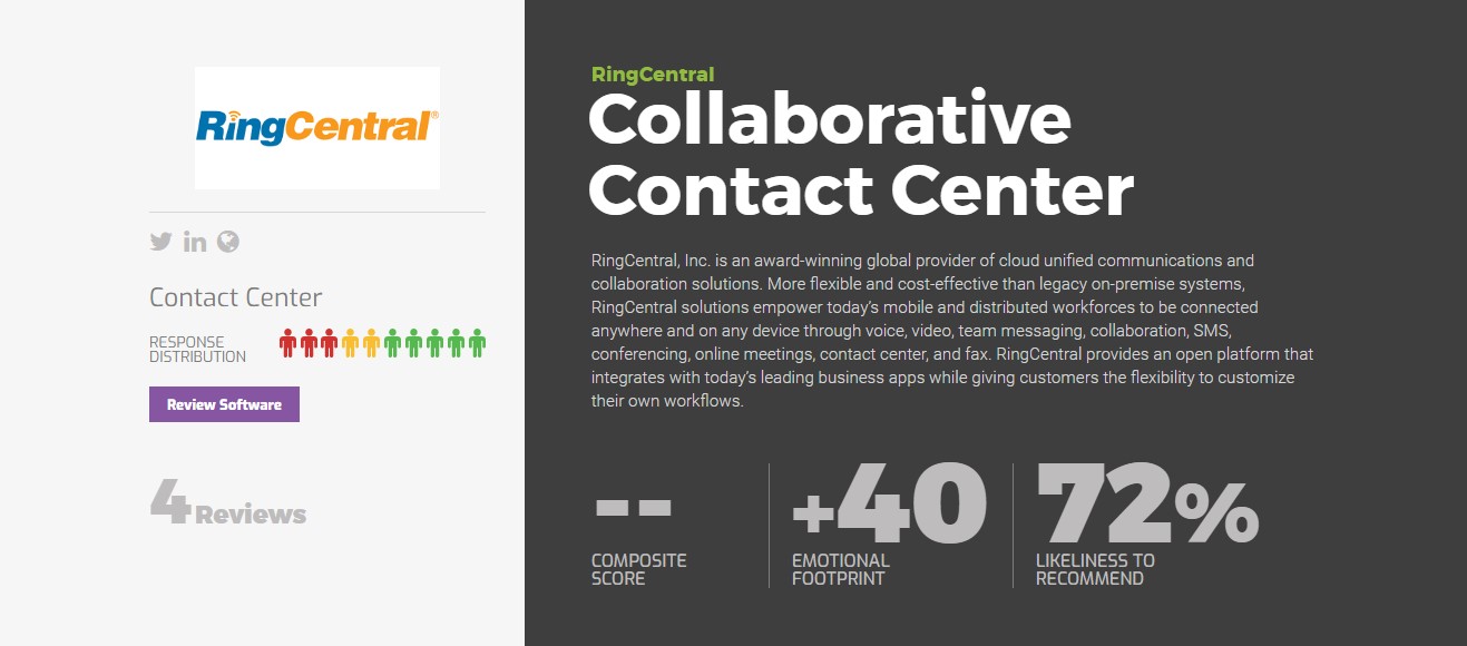 Source: RingCentral Collaborative Contact Center on SoftwareReviews, January 2019