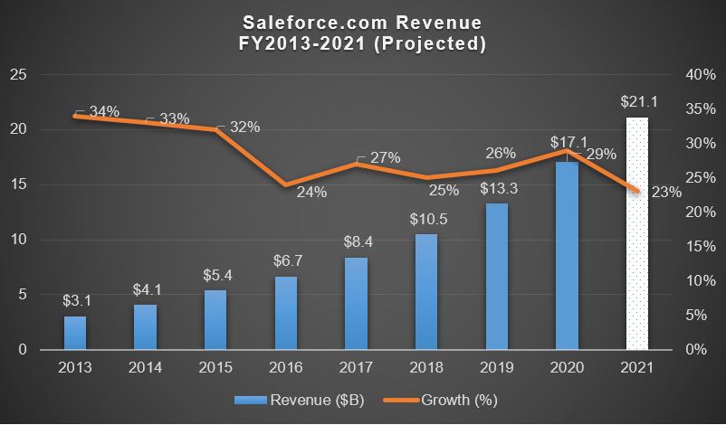 Here is a snapshot of Salesforce's skyrocketing revenue growth: