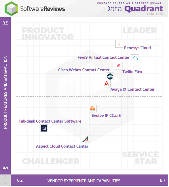 Source: SoftwareReviews CCaaS Data Quadrant. Accessed September 2, 2020.