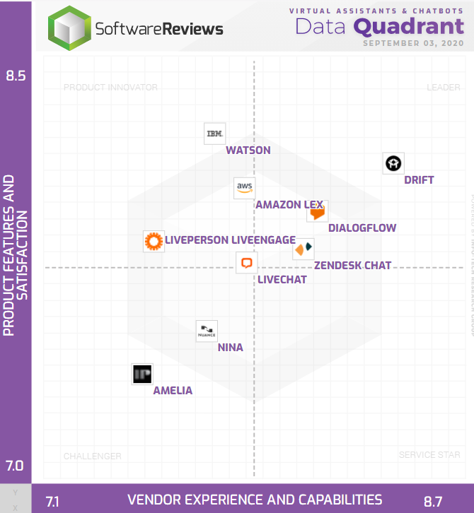 Source: SoftwareReviews Virtual Assistants & Chatbots Data Quadrant. Accessed September 3, 2020.