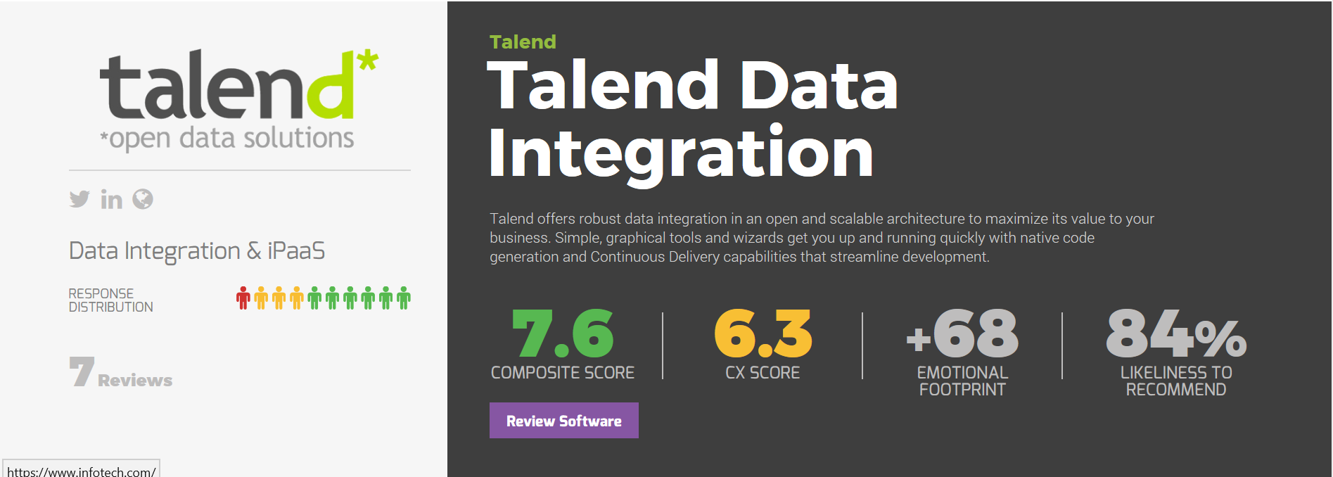 Source: Talend Data Integration DI at SoftwareReviews, October 2019