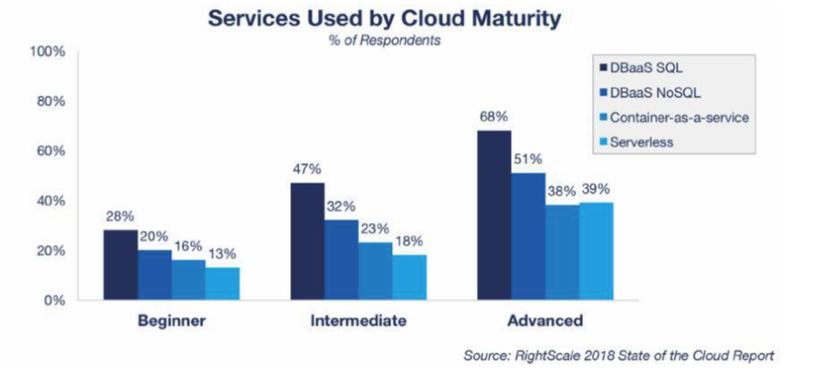 Another survey report, from Cloudfoundry, (where PaaS, containers and serverless stand in a multi-platform world) says that use of services beyond traditional IaaS continues to grow with:
